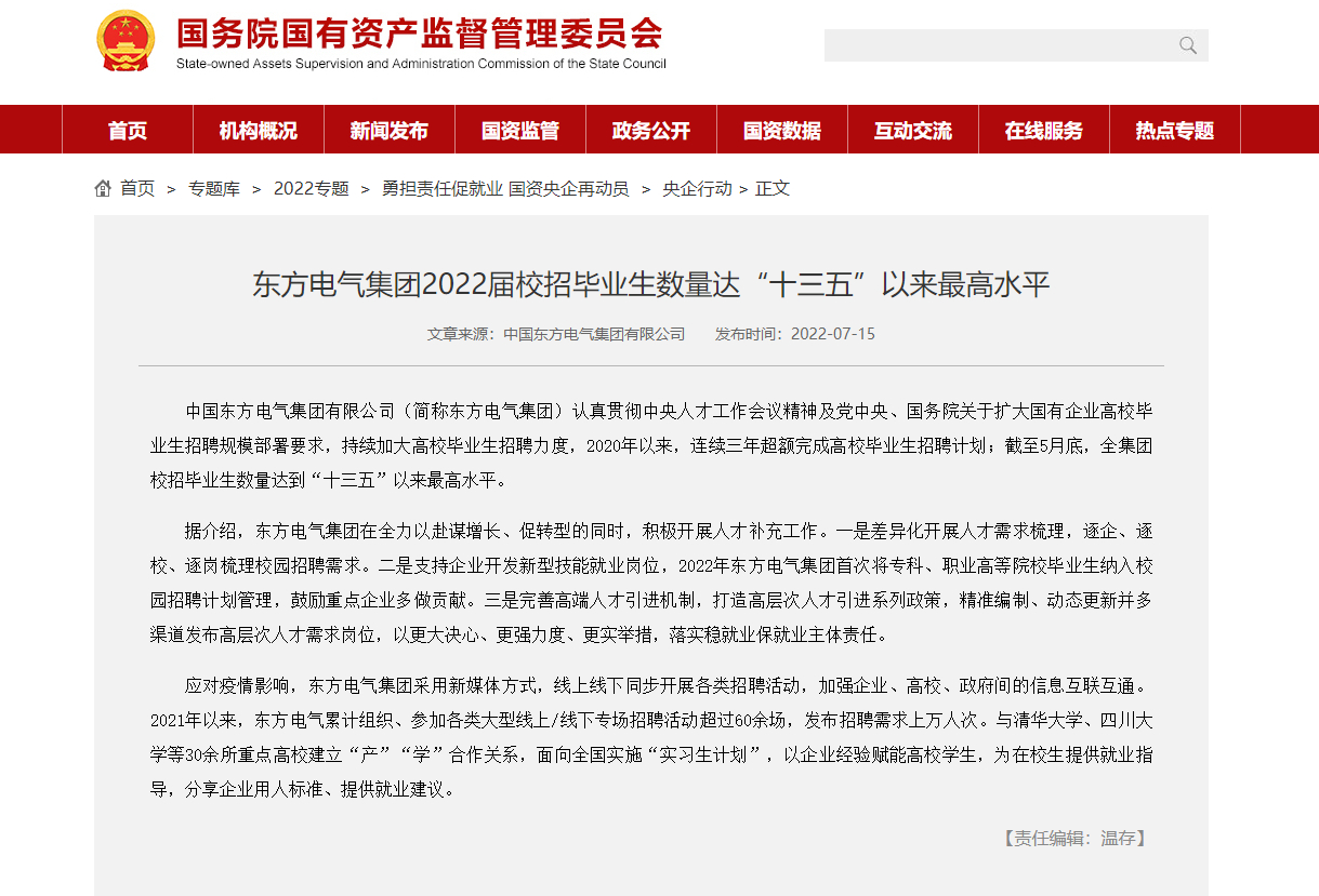 ebet易博(简称ebet易博集团)认真贯彻中央人才事情聚会精神及党中央、国务院关于扩大国有企业高校结业生招聘规模安排要求,一连加大高校结业生招聘力度,2020年以来,一连三年逾额完成高校结业生招聘妄想;阻止5月尾,全集团校招结业生数目抵达“十三五”以来最高水平。