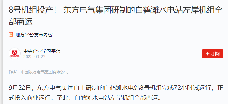 9ÔÂ22ÈÕ£¬ebetÒײ©¼¯ÍÅ×ÔÖ÷ÑÐÖÆµÄ°×º×̲ˮµçÕ¾8ºÅ»ú×éÍê³É72СʱÊÔÔËÐУ¬ÕýʽͶÈëÉÌÒµÔËÐС£ÖÁ´Ë£¬°×º×̲ˮµçÕ¾×ó°¶»ú×éËùÓÐÉÌÔË¡£