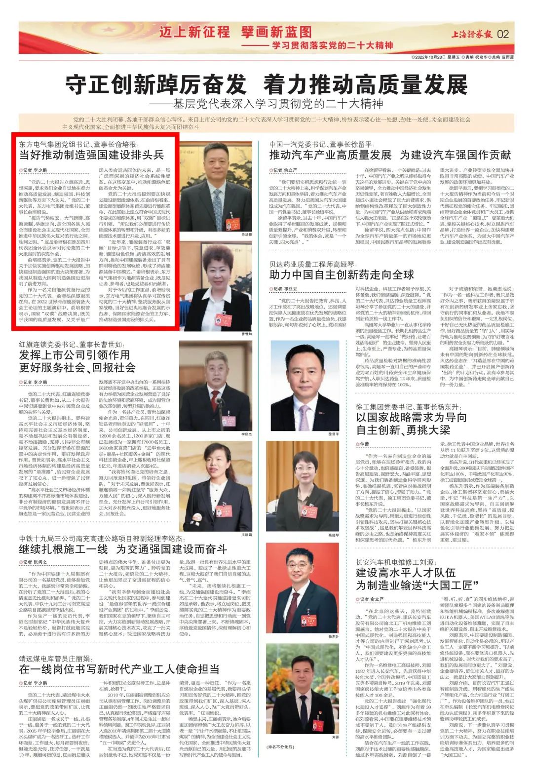 “党的二十大报告立意高远、头脑深邃,要求我们企业自觉地在着力推动高质量生长、制造强国、科技立异驱动等方面下大功夫。”党的二十大代表,ebet易博集团党组书记、董事长俞培根说。