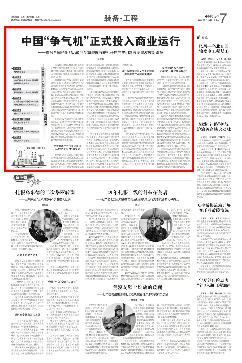 [中国电力报]中国“争气机”正式投入商业运行