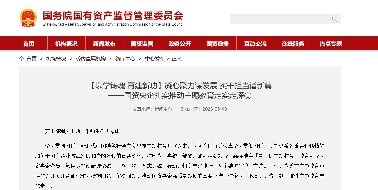 [国资委网站]凝心聚力营生长 实干继续谱新篇 ——国资央企扎实推动主题教育走实走深