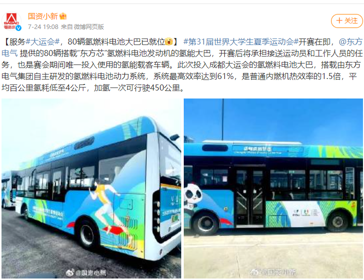 [国资小新微博]效劳#大运会#  ,80辆氢燃料电池大巴已就位