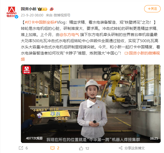 [国资小新]#打卡中国新坐标#Vlog:字斟句酌 ,看水电装备智造 ,观“铁壁绣花”之功!