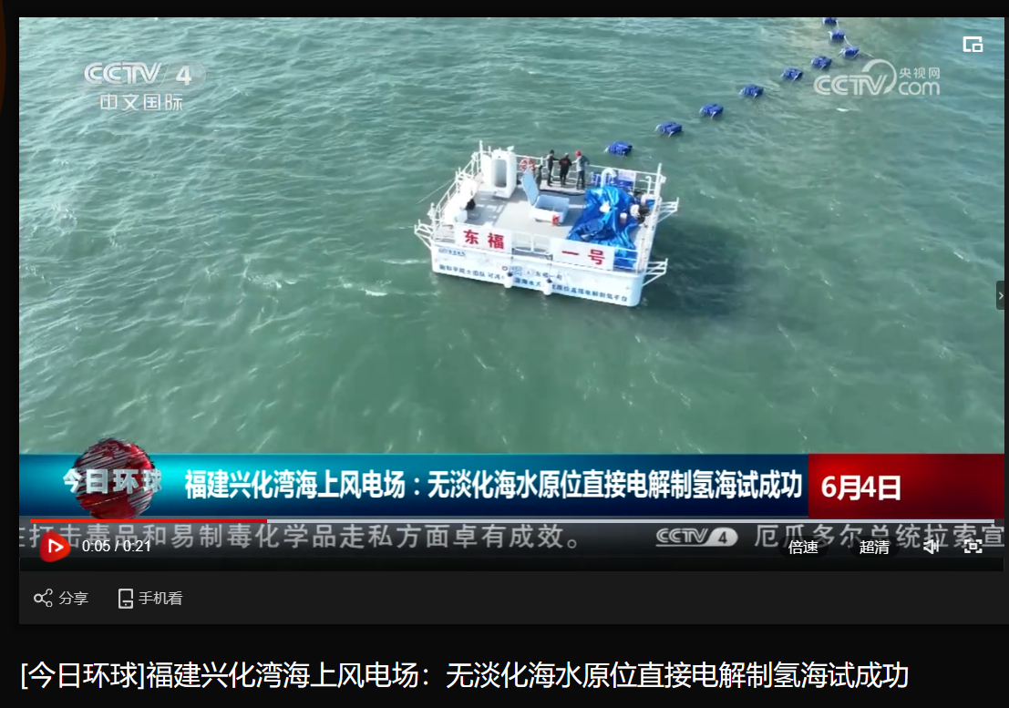 [ÑëÊÓ½ñÈÕ»·Çò]¸£½¨ÐË»¯Í庣ÓÅÊÆµç³¡£ºÎÞµ­»¯º£Ë®Ô­Î»Ö±½Óµç½âÖÆÇ⺣ÊÔÀÖ³É