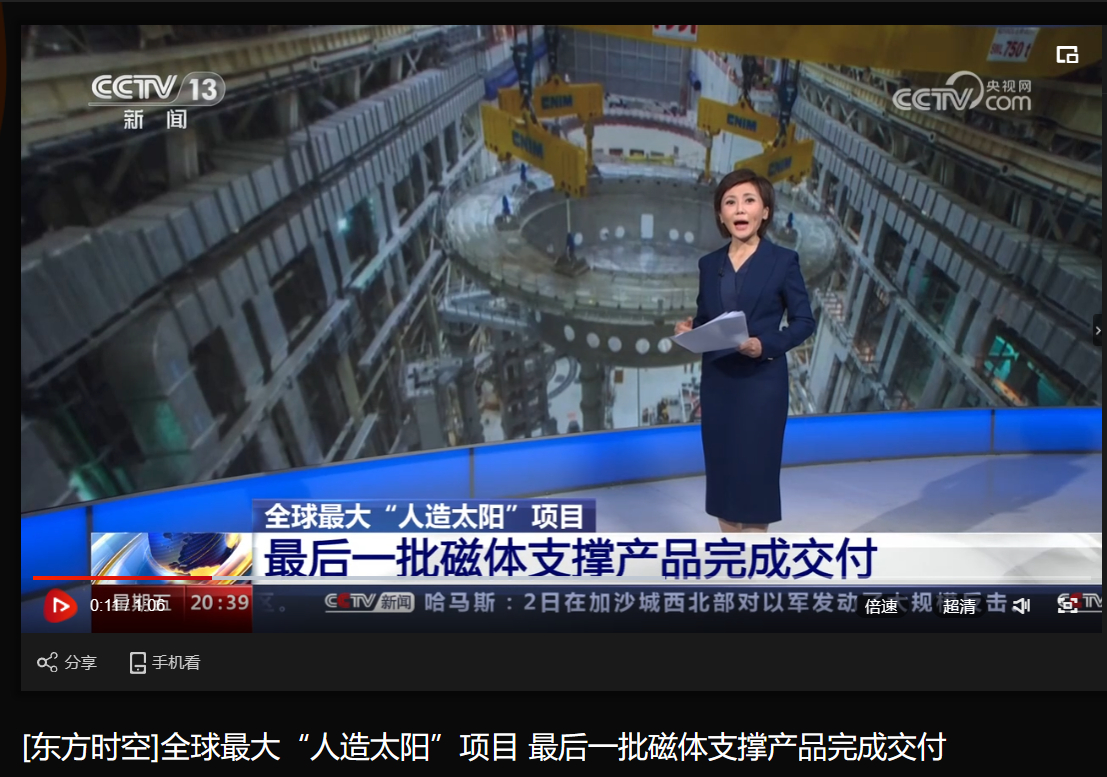 [央视东方时空]全球最大“人造太阳”项目 最后一批磁体支持产品完成交付