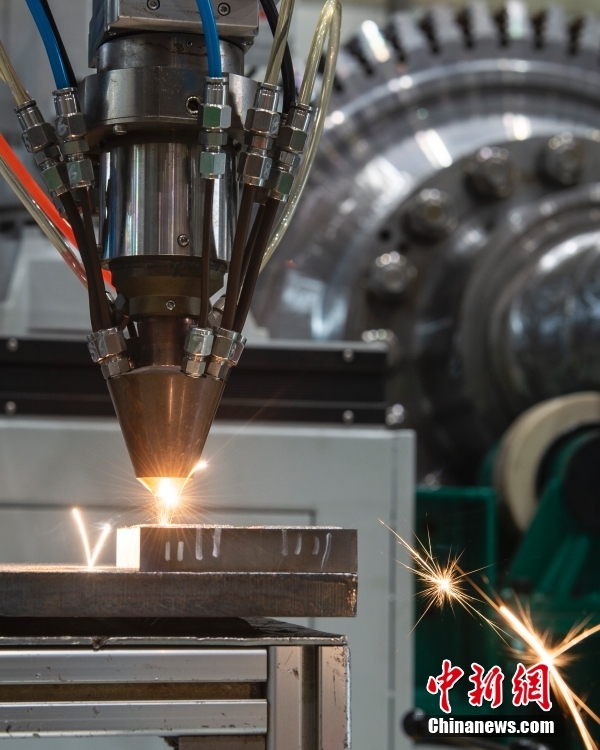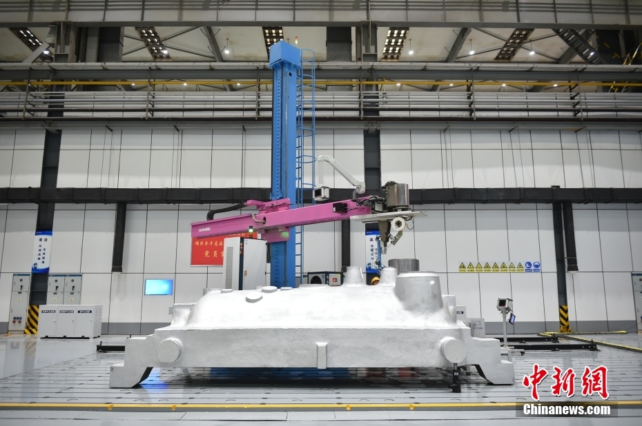 图为车间里的移动式机械人激光修复再制造事情站。