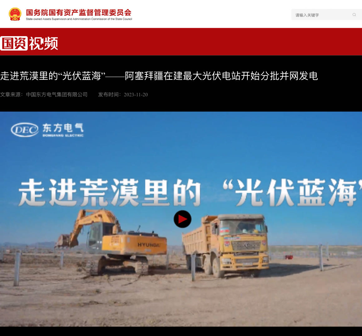 [国资视频]走进荒原里的“光伏蓝海”——阿塞拜疆在建最大光伏电站最先分批并网发电