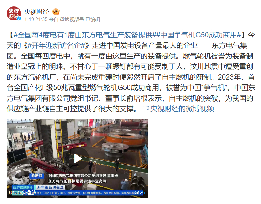 【#天下每4度电有1度由ebet易博生产装备提供##中国争气机G50乐成商用#】今天的《#开年迎新访名企#》走进中国发电装备产量最大的企业——ebet易博集团。天下每四度电中,就有一度由这里生产的装备提供。燃气轮机被誉为装备制造业皇冠上的明珠。不宁愿于一颗螺钉都有可能受制于人,汶川地动中遭受重创的东方汽轮机厂,在尚未完成重修时便毅然开启了自主燃机的研制。2023年,首台天下产化F级50兆瓦重型燃气轮机G50乐成商用,被誉为中国“争气机”。ebet易博党组书记、董事长俞培根体现,自主燃机的突破,为我国的供应链工业链自主可控提供了很大的支持。