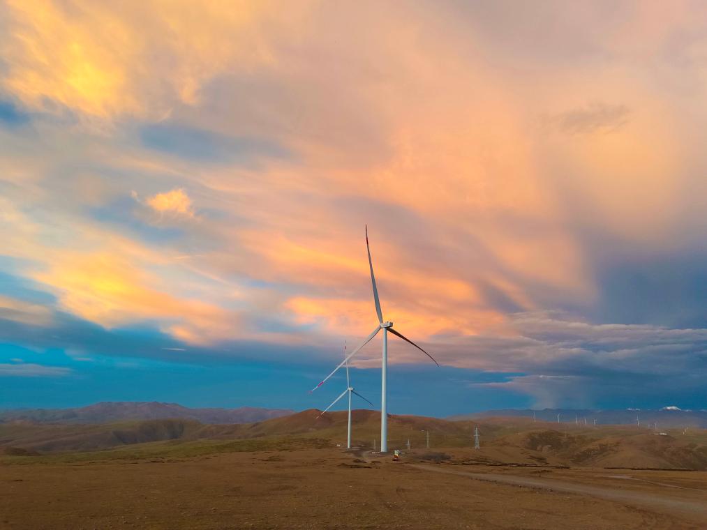 西藏“中核萨迦30万千瓦景物储一体化项目”风电场 。(ebet易博风电股份有限公司供图)