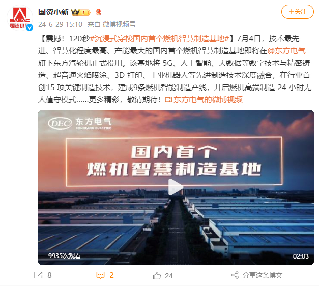 [国资小新]震撼!120秒#陶醉式穿梭海内首个燃机智慧制造基地#