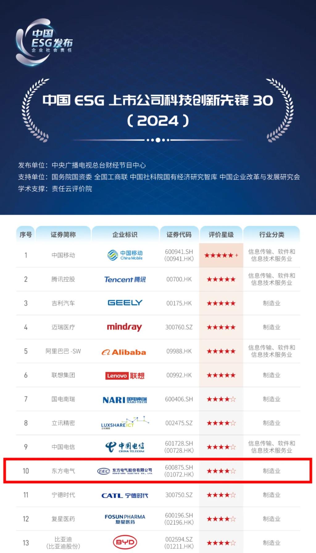 该报告以972家上市公司作为样本,从中筛选出237家科技属性较强的企业作为研究评价工具,最终遴选了30家在ESG方面体现卓越的企业组成此次榜单。