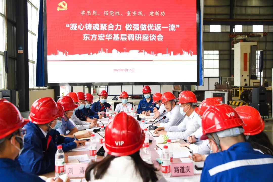 俞培根首先与东方宏华向导班子座谈,调研东方宏华党的建设、生产谋划及主题教育开展情形,并围绕深化刷新、科技立异、能源装备高质量生长等交流钻研。