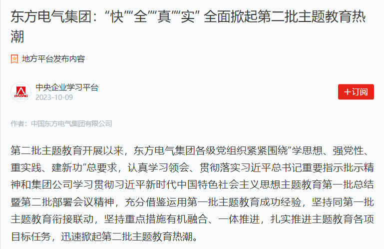 东方宏华坚持“四个稳固”,以“四个连系”实现“四个提升”,迅速启动,扎实落实第二批主题教育各项使命和行动 。东方风电笼罩7个子公司、24名中层向导职员,14个党支部,170余名党员,周全推进、周全落实各项事情 。东方大件物流连系现实,第一时间研究支部主题教育总体妄想和念书班、专题学习、专题党课、视察研究等专项事情计划 。东方启能连系现实,迅速制订下发主题教育实验妄想表,细化理论学习、视察研究、推动生长、检视整改等重点使命6项22条 。东方峨半高纯、东方飞源研究制订第二批主题教育实验妄想,周全推进第二批主题教育各项事情 。