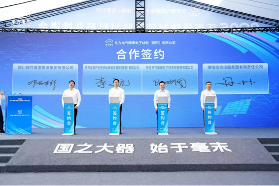 会上  ,东方精材划分与无锡帝科、杭州华光签署相助协议  ,绵竹市政府与东方研究院签署相助协议  ,东方江峡工业投资、德阳投资控股集团、四川绵竹高发投资集团、东方研究院签署相助协议  ,江苏瀚思瑞与四川绵竹高新手艺工业园区签署相助协议。